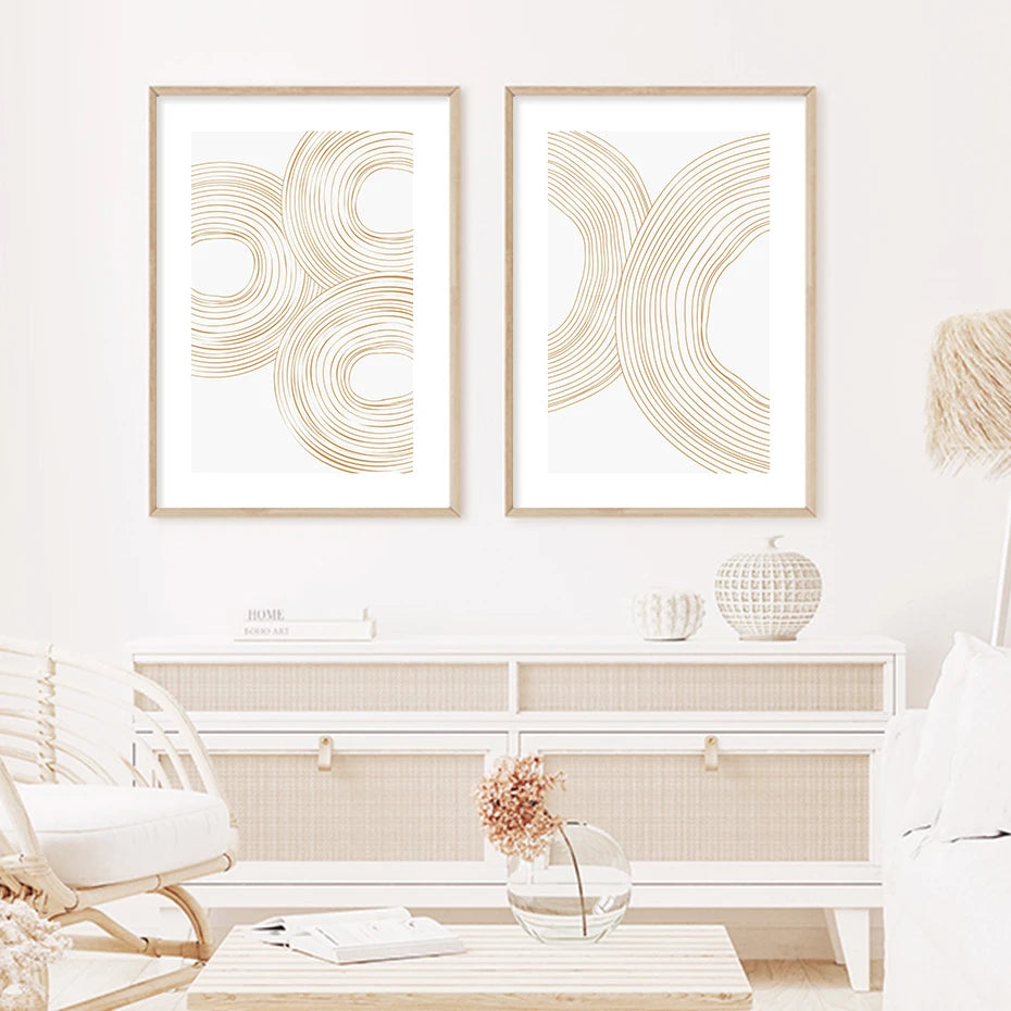 Les affiches sont imprimées sur une toile en coton robuste et durable. Ce choix de matériau assure non seulement une excellente longévité, mais offre également une texture raffinée qui donne vie aux couleurs et aux formes géométriques.