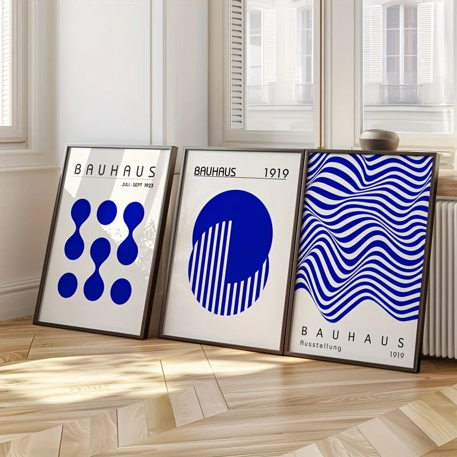 Set de 3 affiches en toile BAUHAUS RETRO BLEU